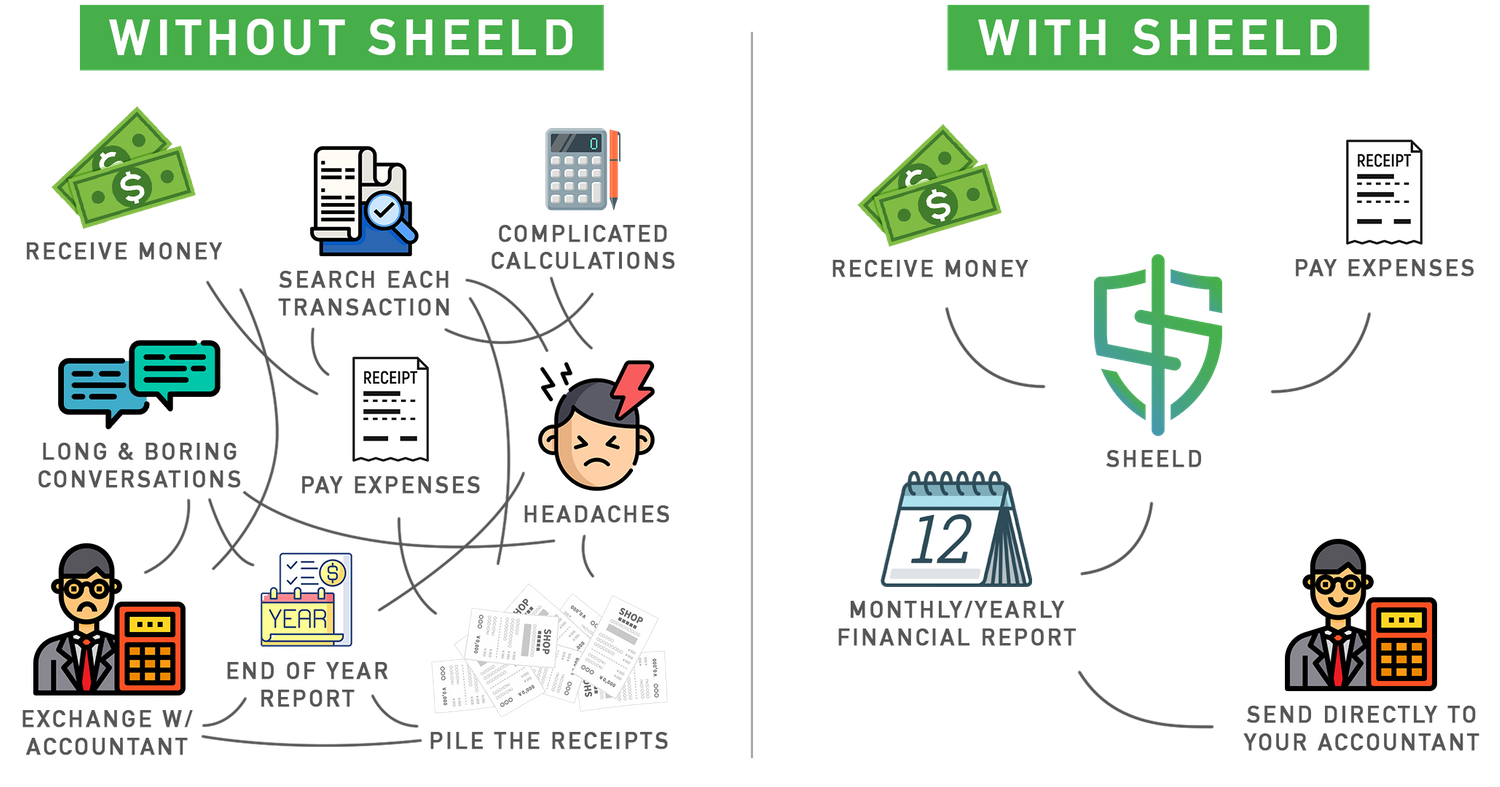 You no longer have to spend hours trying to figure out your finances in a boring accounting software, or trying to comprehend your accountant's report. SHEELD can help you in having an easy to digest financial report that is: